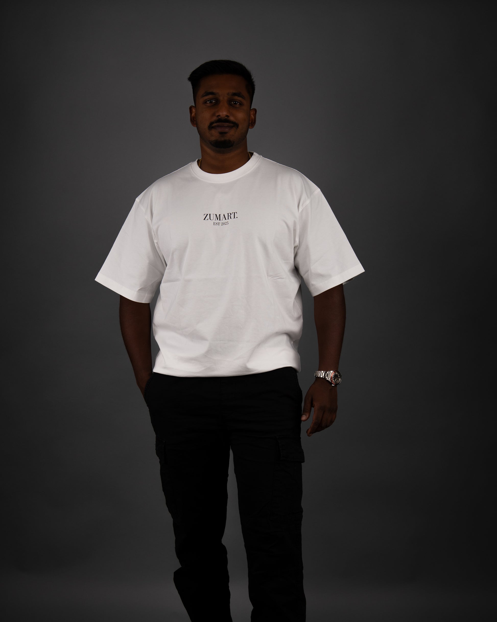 - Male Model Susmi (175 cm) trägt Grösse M.